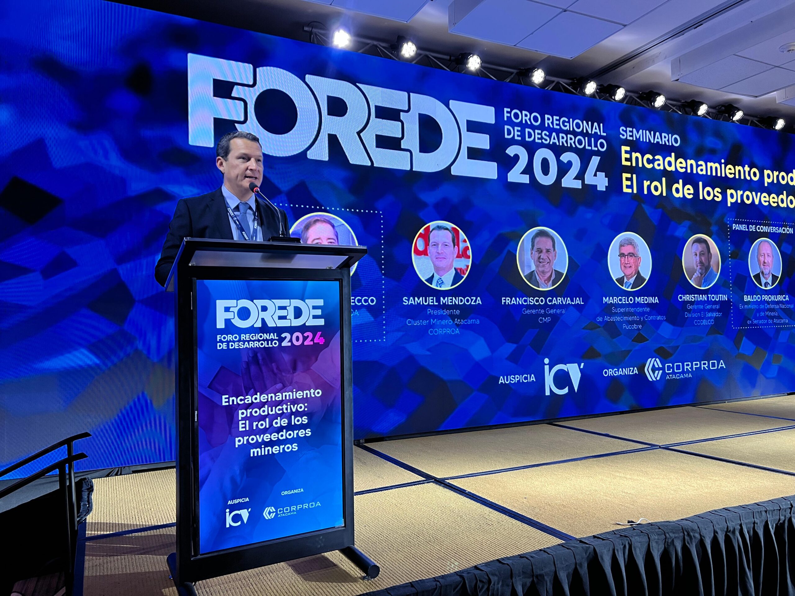 En el marco del Seminario “Encadenamiento Productivo: El Rol de los Proveedores Mineros” de FOREDE 2024, se realizó la presentación del Cluster Minero Atacama, primera actividad pública de esta iniciativa conformada por 13 empresas mineras de la región junto a la Corporación para el Desarrollo de la Región de Atacama, CORPROA.